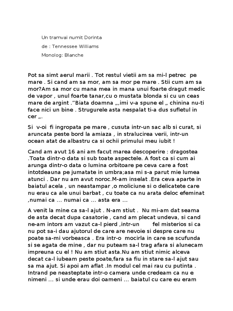 Un Tramvai Numit Dorinta Tennessee Williams Pdf Document