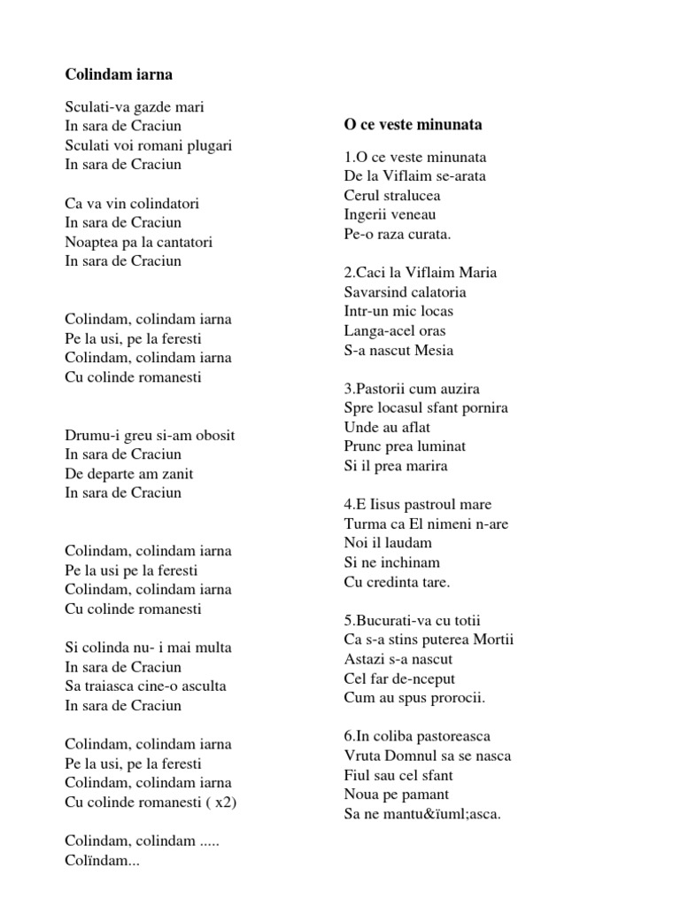 O Ce Veste Minunata Versuri Colinde
