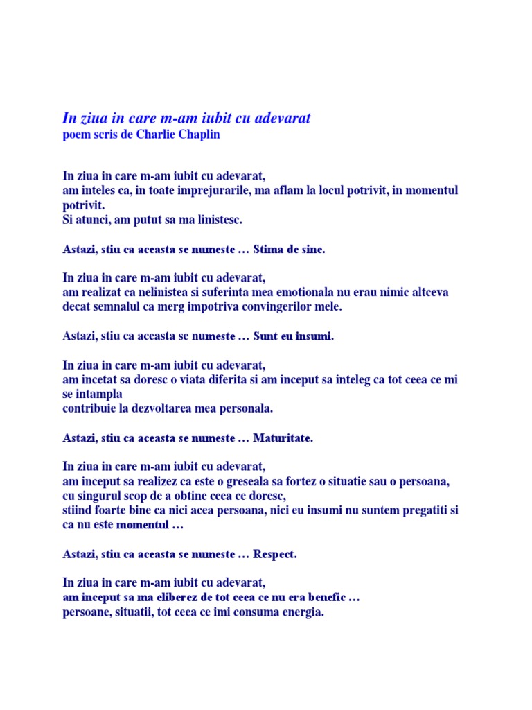 In Ziua In Care M Am Iubit Cu Adevarat Charlie Chaplin Randuri Pentru Tine
